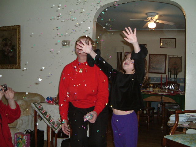 Christmas Eve in Battle Creek 2002. A new tradition: confetti!.