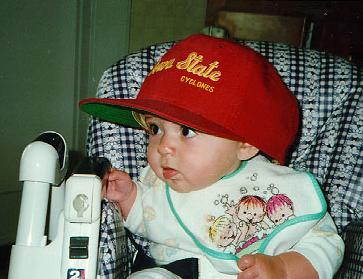 Dad is always putting hats on me. This is one from his friend Joe Nimmo, who like Dad's Dad and most of the other Nimmos, went to Iowa State.