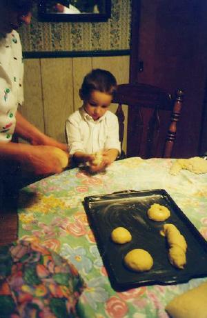 Easter at Grandma and Grandpa's house. This is my cousing Zak making egg bread.
