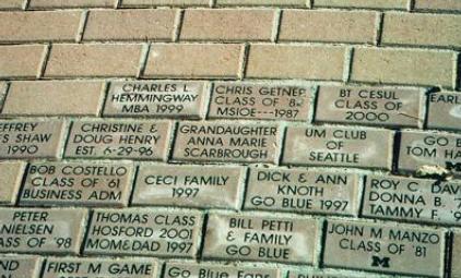 It was so warm that the day after Thanksgiving we went to Michigan Stadium and looked around. This is the brick that Grandma Olga bought for me at the new northwest entrance to the stadium.