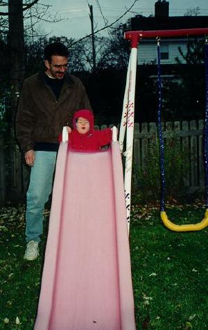 Me and Dad playing on the new swing set.
