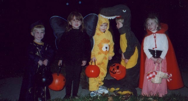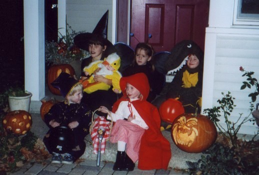 The whole trick or treating crew. Back row: Katherine, Maren (Avery's new baby sister), me and Jack. Front row: Griffin and Avery.