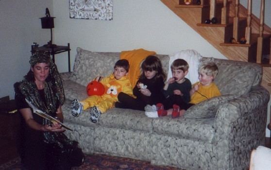 Jack's mom Nancy is reading us a story after we got back. William joined us about half way through.
