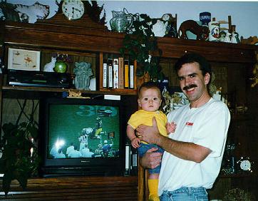 Mom and Dad aren't real big U of M football fans, but living 3 blocks from the stadium it's hard not to get caught up in the excitement. Mom dressed me in maize and blue for the home games. You can see the game on the tv.