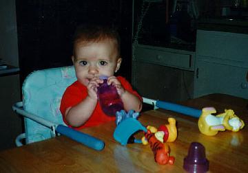 We went to visit Delaney at her house. This is where I first ate Cheerios. I liked them so much that I've had them about every day since.